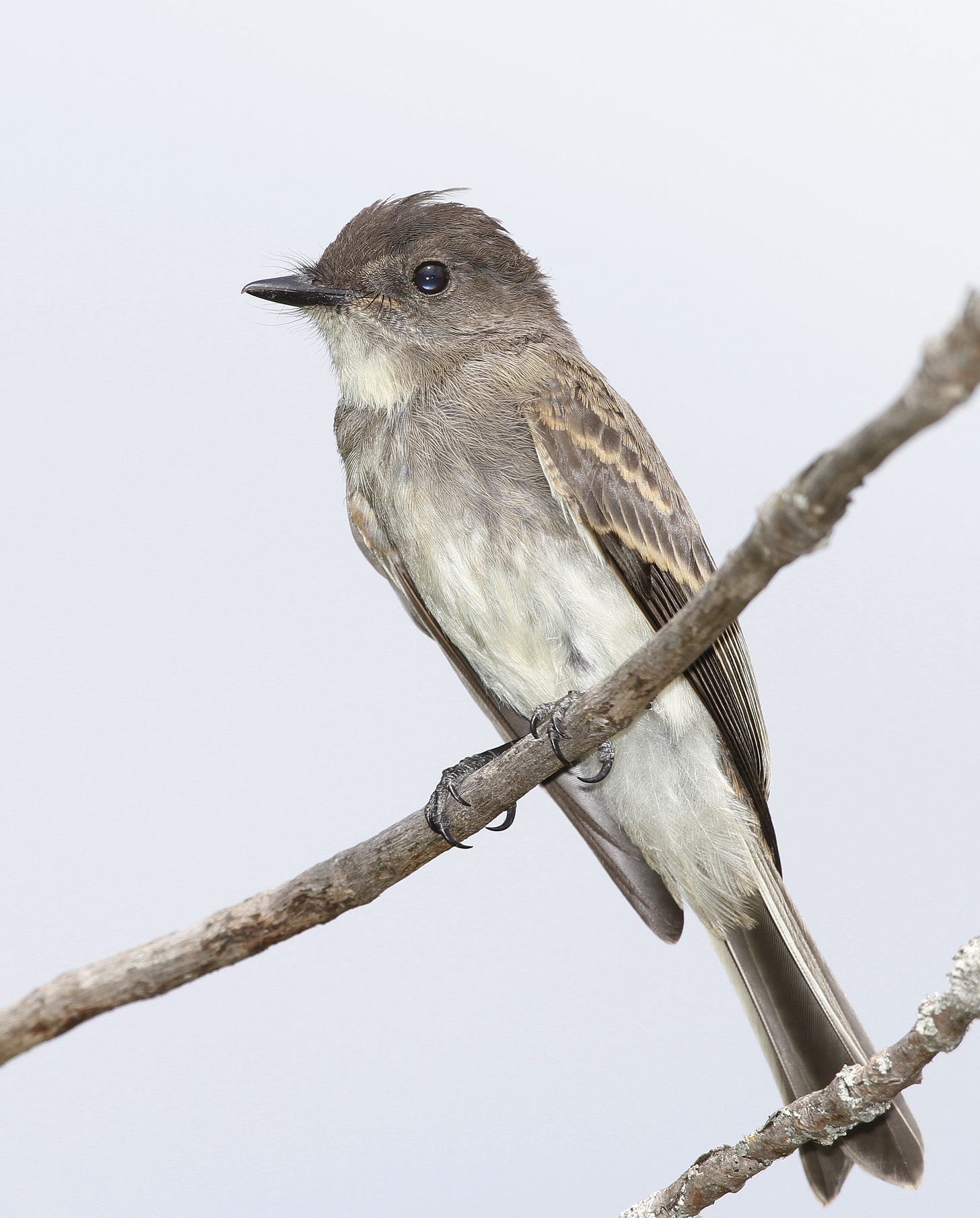 Phoebes aren’t flashy, colourful or dramatic. Not melodic either, that raspy, rising-falling “fee-be, fee-be” song they often repeat. Shy, retiring, they quietly come and go, flitting down into the garden to snatch an insect, then back up on a fence post to eat it. Why so much fondness for these little brown birds? Because they’re such good neighbours, polite, well-behaved, dependable. And darling.